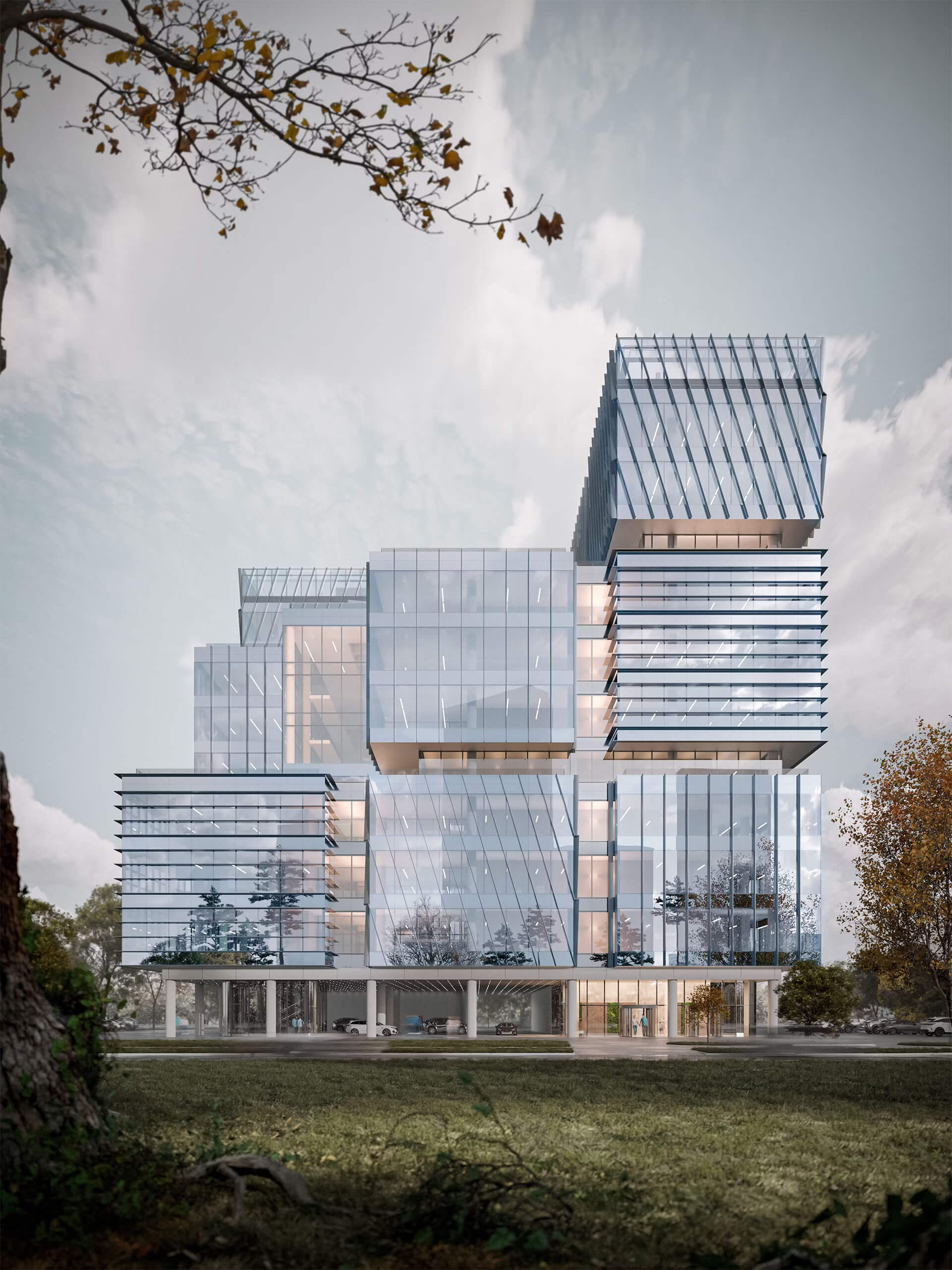 Продуманная композиция фасадов, выразительные объемы и внимание к деталям формируют премиальный облик делового центра. Архитектура «Магистральной 12» подчеркивает статус проекта и соответствует международным стандартам бизнес-центров класса А.