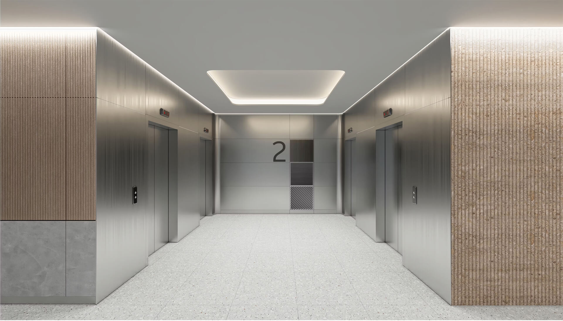 Парковочные пространства спроектированы с учетом потоков въезда и выезда, обеспечивая безопасность и комфорт. VIP-паркинг на первом уровне здания имеет прямой доступ к входной группе, что подчеркивает статусность проекта и удобство для компаний премиум-сегмента.